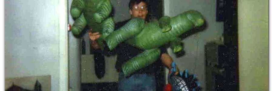 Is that him, in the picture? No no, surely this is just your friendly, local neighbourhood inflatable dinosaur juggler!