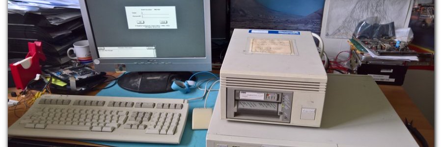 This is Rob Jarratts' DECstation 2100 with a TZ85 tape drive. He's been trying really hard to restore data from our old TK50 backup tapes made by our DEC MicroVAX back in 1988.