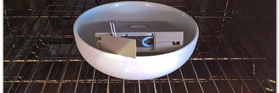 Here we have possibly the only surviving backup tape of the source code to 30 year old historical game data being put into an oven and baked!