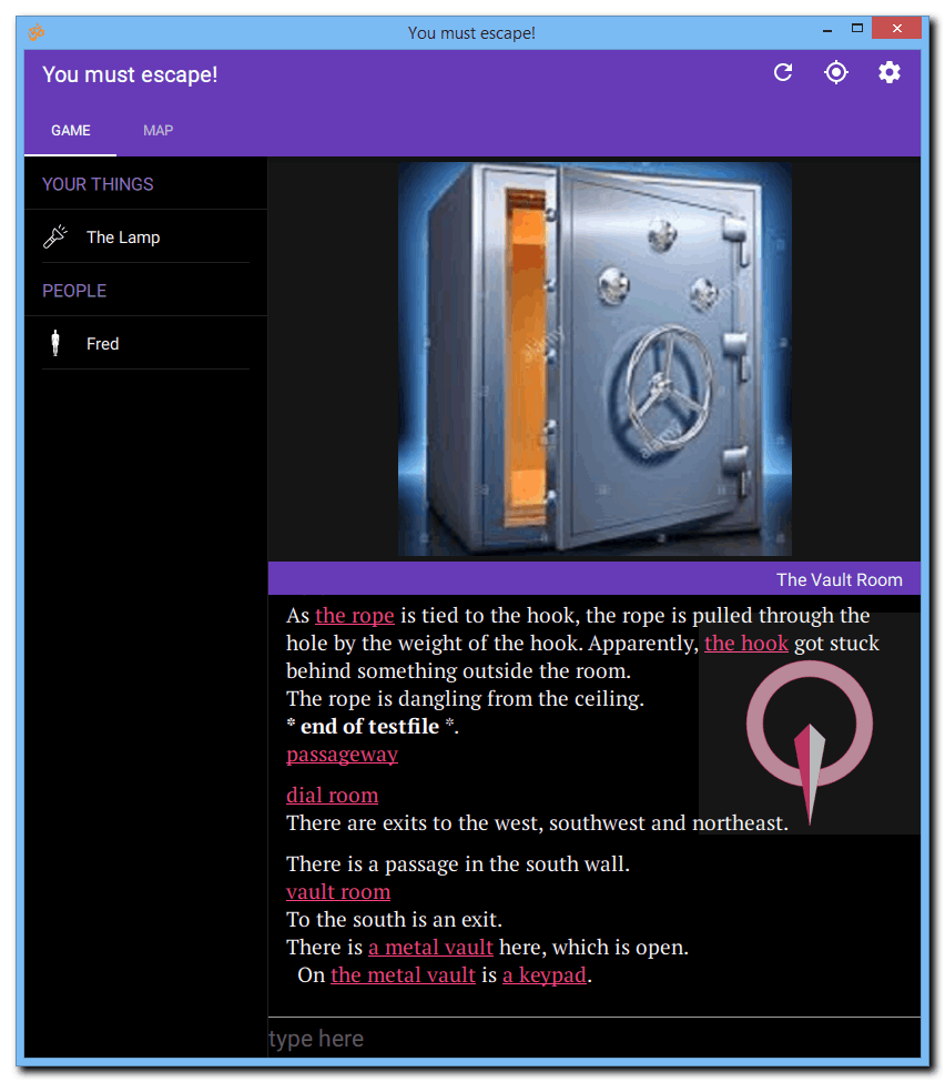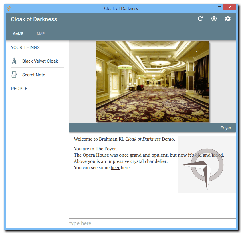 Using IFI, a GUI can be driven from an IF engine by supplying aspects of the game world state. There are many more properties within the IFI schema, including setting up themes and supplying coverpage info and credits.