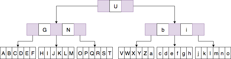 Note: In practice, the list segment sizes in the set are much bigger than 4-8 elements shown here for illustration (eg ~1024).