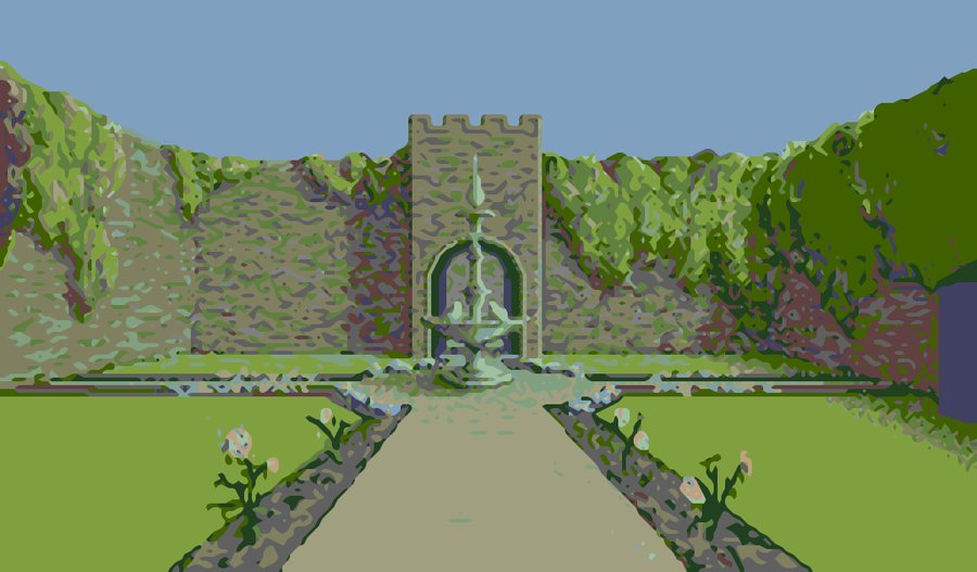 We also learn another trick from artists' drawings - use pastel shades. We always used to wonder why artists of the day preferred "dull" pastel colours. Turns out a palette of pastel shades best approximates most scenes, when a low colour count is required.