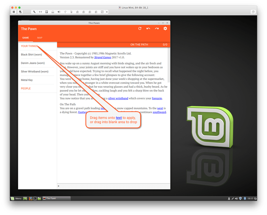 The Android version is in Beta, and we're working on the desktop versions of The Pawn by Magnetic Scrolls. There will be versions for Mac OSX, Windows and Linux.